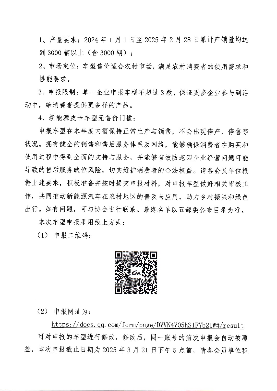 关于2025年度新能源汽车下乡车型推荐目录申报的通知