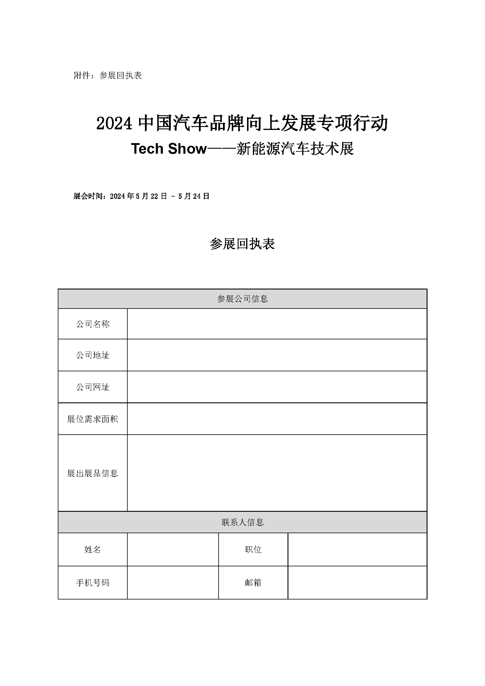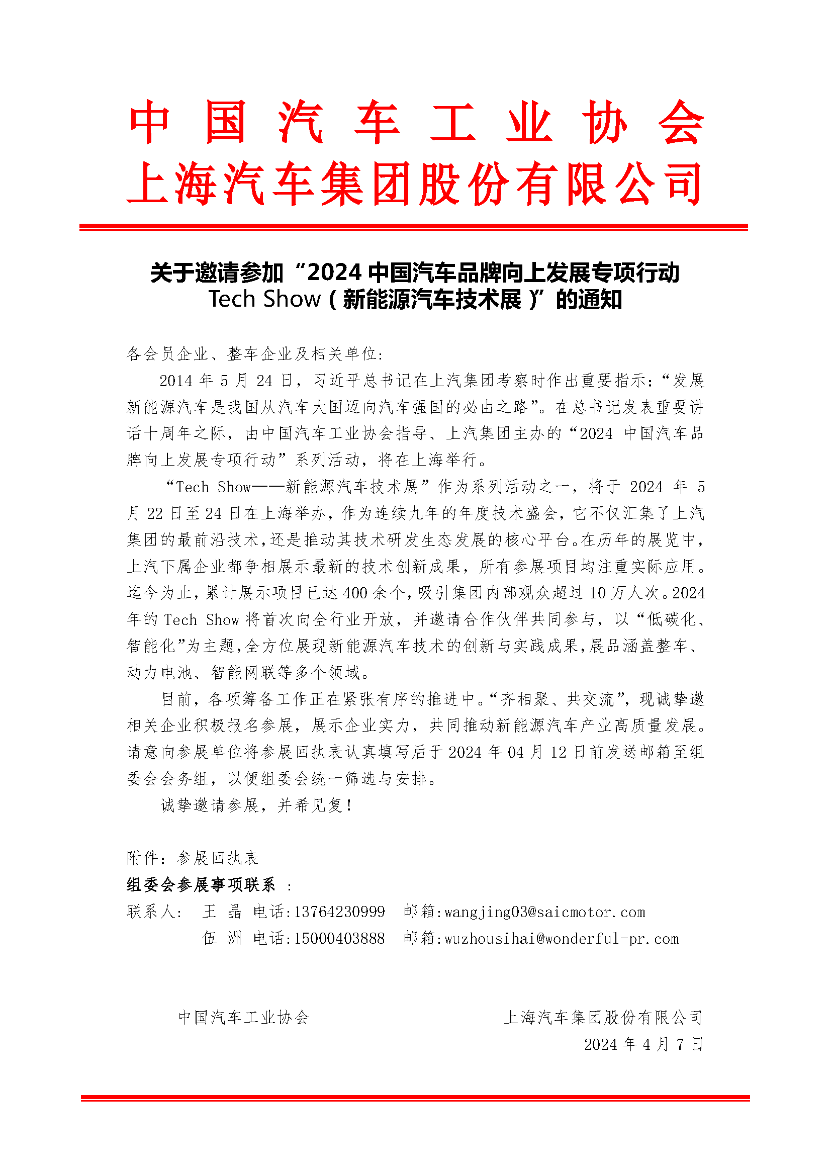 关于邀请参加“2024中国汽车品牌向上发展专项行动 Tech Show(新能源汽车技术展)”的通知